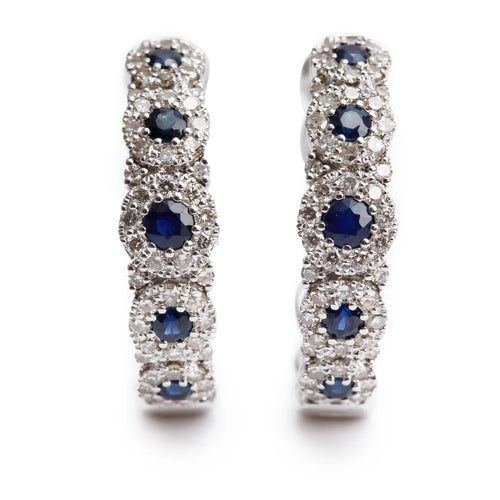 18k White Gold Emerald & Diamond Huggie Earrings 18k White Gold Emerald & Diamond Huggie Earrings